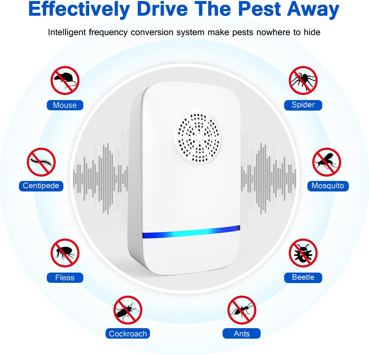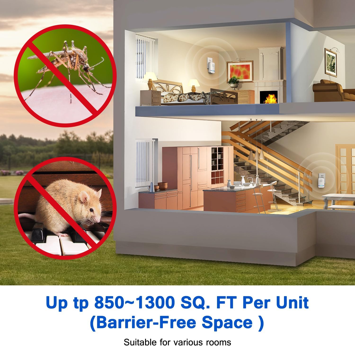 Wide coverage for full protection: Each unit covers an area of 80-120 square meters, making it ideal for home, office, warehouse use. For best results, place an ultrasonic pest repellent in each room, especially in areas with significant infestations, such as areas that require a cockroach killer indoor infestation or ant trap indoor solution.
