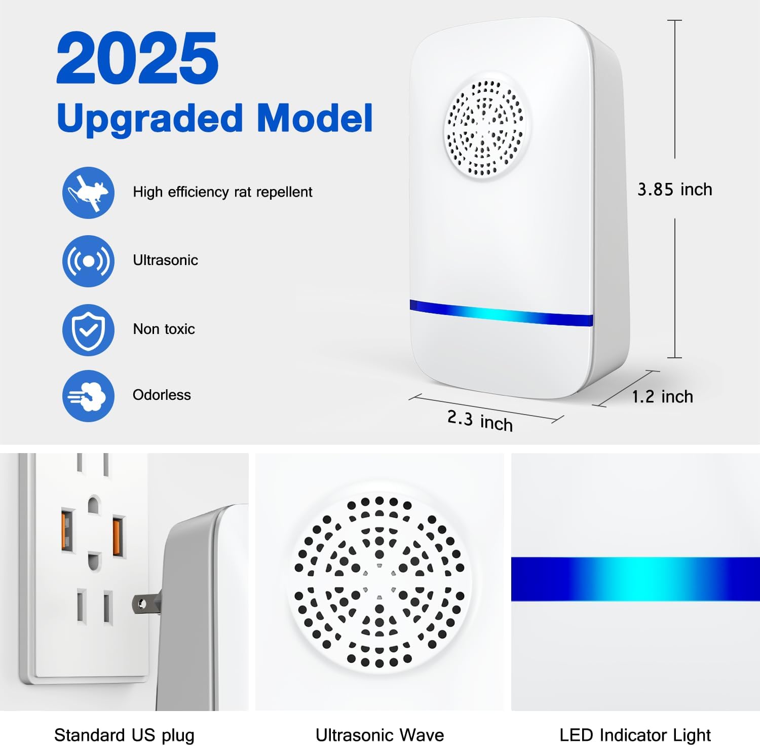Efficient Ultrasonic Technology: Ultrasonic repellers use sound waves to repel pests such as mosquitoes, cockroaches, and rats. It provides a safe and effective solution for pest control, making it an ideal rodent and mosquito repellent for your home.