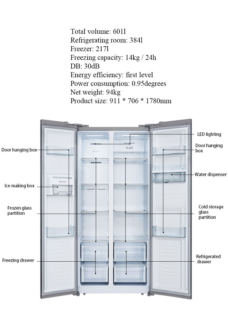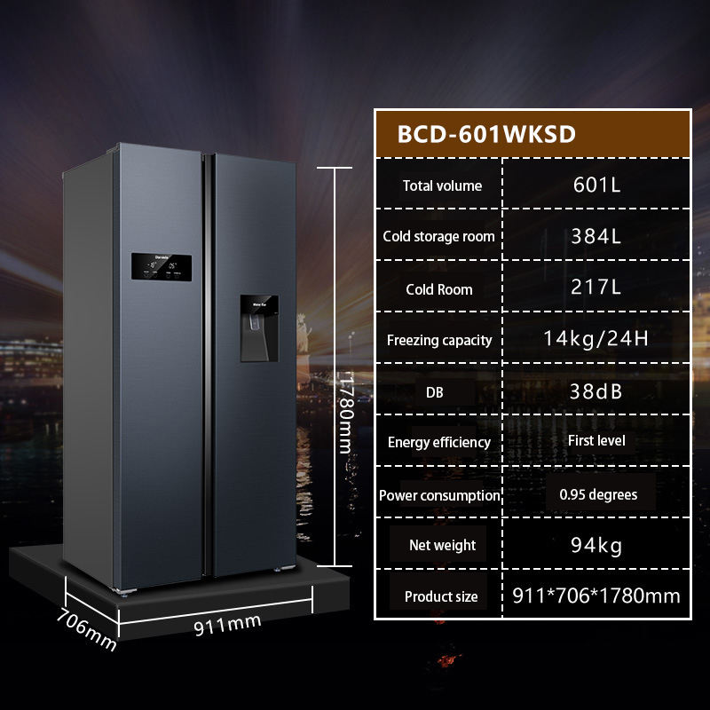 601L 2-Door French Door Refrigerator Frost-free Frequency Conversion Household Water bar Refrigerator